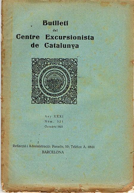 BUTLLETÍ DEL CENTRE EXCURSIONISTA DE CATALUNYA. Octubre de 1921. Nº 321.