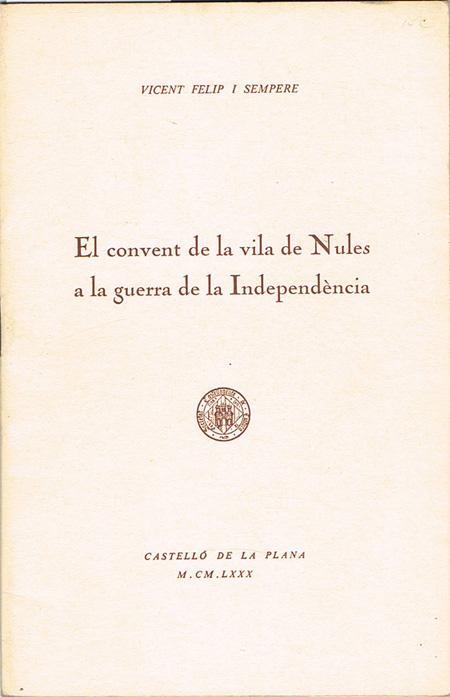 EL CONVENT DE LA VILA DE NULES A LA GUERRA DE LA INDEPENDÈNCIA.