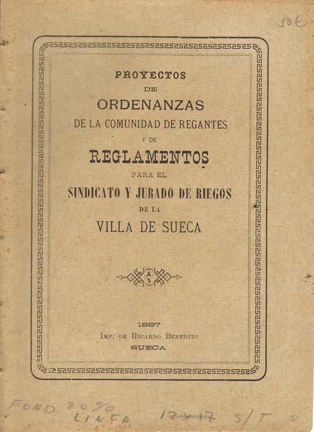PROYECTOS DE ORDENANZAS DE LA COMUNIDAD DE REGANTES Y DE REGLAMENTOS PARA EL SINDICATO Y JURADO DE RIEGOS DE LA VILLA DE SUECA